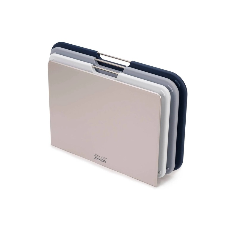 This smart set of color-coded chopping boards comes with its own sleek storage stand, making the boards very easy to access and a stylish addition to any worktop. Each board is a different size, catering for a range of food prep tasks, and features an easy